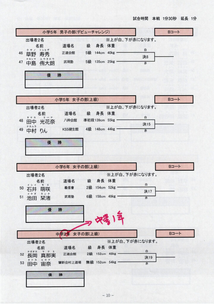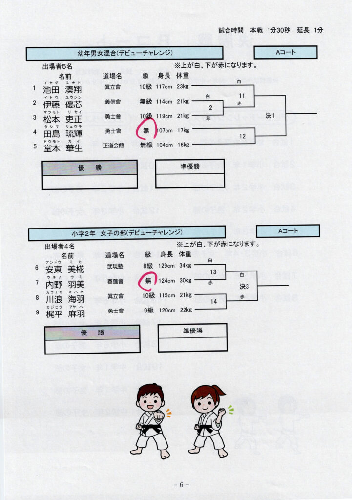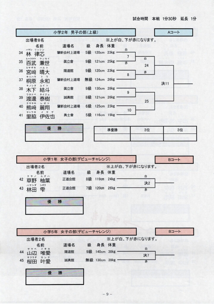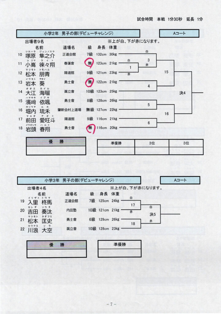 11月24日開催の長崎県空手道飛翔試合のトーナメント表をアップいたします。