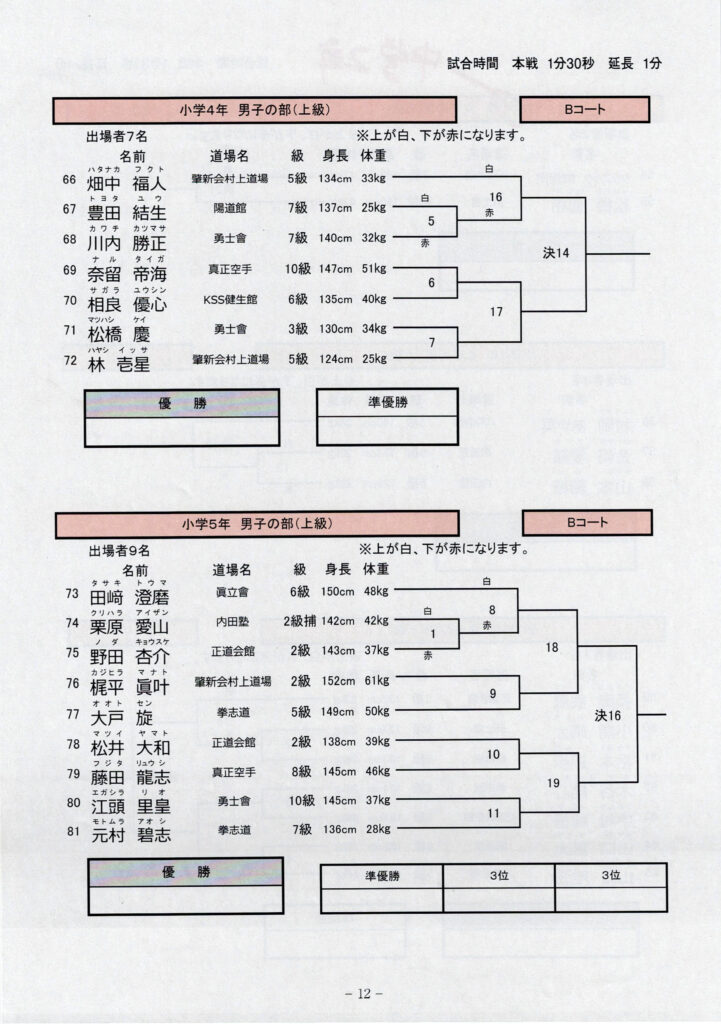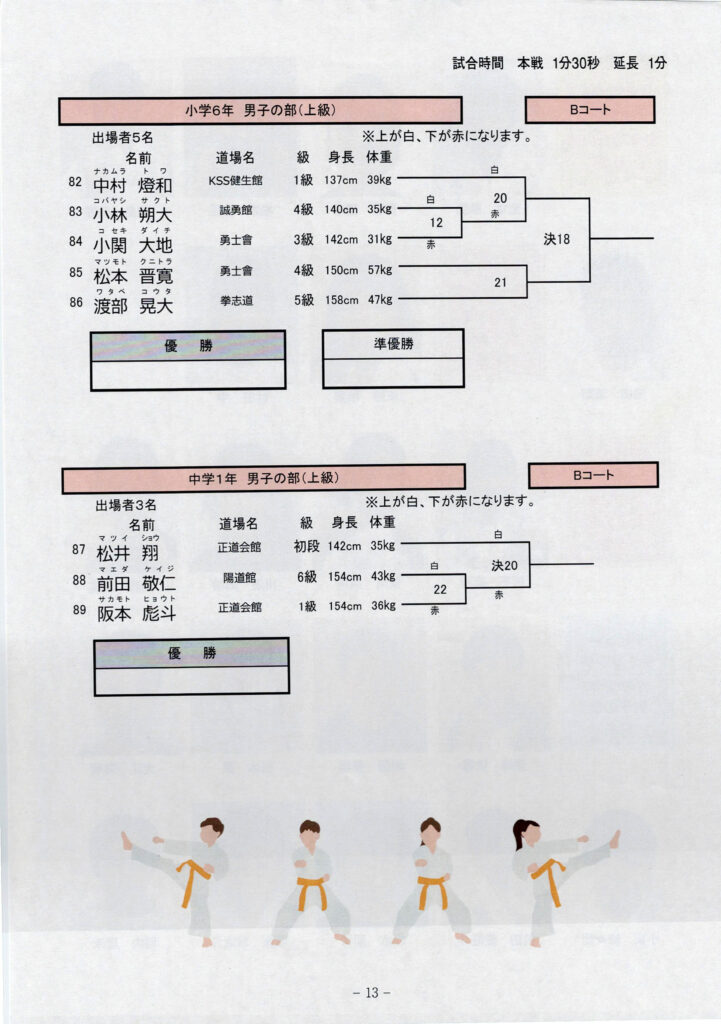 第13回長崎県空手道飛翔試合トーナメント表